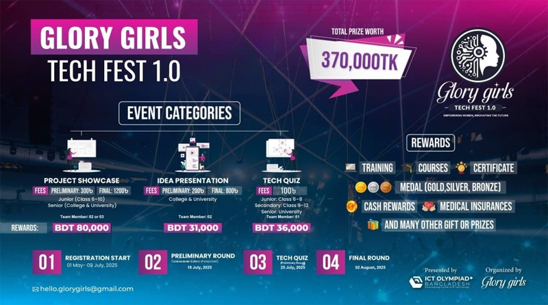 ইভেন্ট নিউজ ঢাকায় প্রথমবারের মতো মেয়েদের প্রযুক্তি উৎসব “গ্লোরি গার্লস টেক ফেস্ট ১.০ “ – সুচিস্মিতা চক্রবর্তী