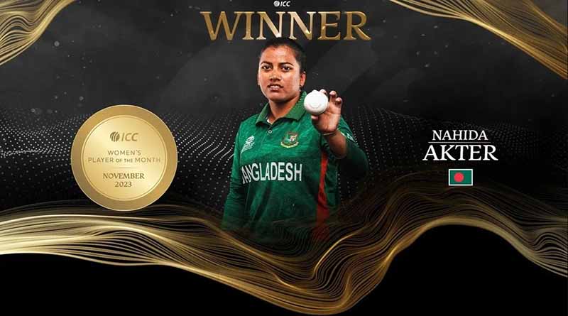নভেম্বরের মাসসেরা ক্রিকেটারের পুরস্কার জিতেছেন বাংলাদেশ নারী ক্রিকেট দলের বাঁহাতি স্পিনার নাহিদা আক্তার। প্রথম বাংলাদেশি নারী ক্রিকেটার হিসেবে এই পুরস্কার জিতলেন নাহিদা।নাহিদা পেছনে ফেলেছেন তাঁর সতীর্থ ফারজানা হক ও পাকিস্তান স্পিনার সাদিয়া ইকবালকে। পুরস্কার জিতে আপ্লূত নাহিদা আইসিসিকে জানিয়েছেন, ‘এটা দারুণ মুহূর্ত।বিশেষজ্ঞ প্যানেলের বিবেচনায় আইসিসির মাসসেরার পুরস্কারের এই স্বীকৃতি আমার জন্য ভবিষ্যতে অনুপ্রেরণার খোরাক হবে। গত কয়েক মাসে আমরা দারুণ ক্রিকেট খেলেছি। দলের সাফল্য অবদান রাখতে পেরে আমার ভালো লাগছে। আমার ওপর বিশ্বাস রাখার জন্য আমি অধিনায়ক, কোচিং স্টাফ এবং সতীর্থদের ধন্যবাদ দিতে চাই।এটা আমাকে আমার সহজাত খেলা খেলতে এবং চাপের মধ্যে পারফর্ম করতে সাহায্য করেছে।’